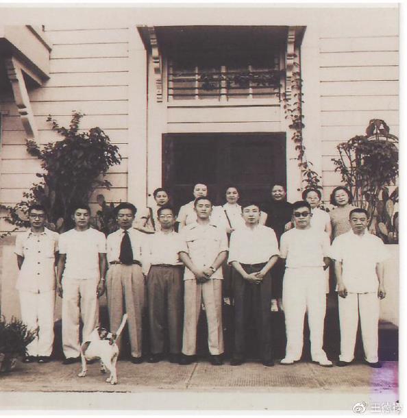 1950年回国途中,同船9位同学到俞惟乐父母家做客,前左起:俞惟麟(俞惟乐小弟)、俞惟忠(俞惟乐大弟)、潘守鲁、侯祥麟、朱昂、黄星圻、俞惟荣(俞惟乐哥哥)、俞仲葵(俞惟乐父亲);后左起:黄夫人郭开兰、邓婉嫭、佘夫人(佘守宪太太)、程太太、方梅来(俞惟乐母亲)、俞惟乐