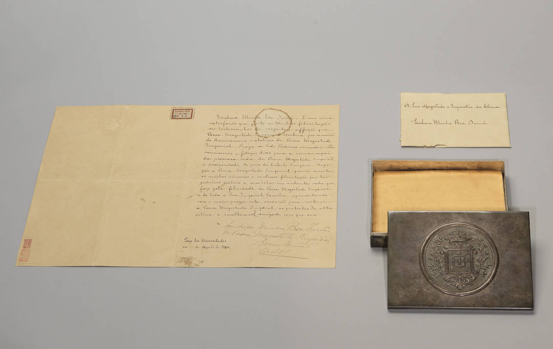 光绪三十年(1904)慈禧皇太后七十岁生日,葡萄牙由驻北京参赞署理公使阿梅达(Gabriel D’Almeida Sanctos)代表国王卡洛斯一世(CarlosⅠof Portugal, 1863-1908),递送装入铸有徽记银盒的国书,祝贺慈禧圣诞。