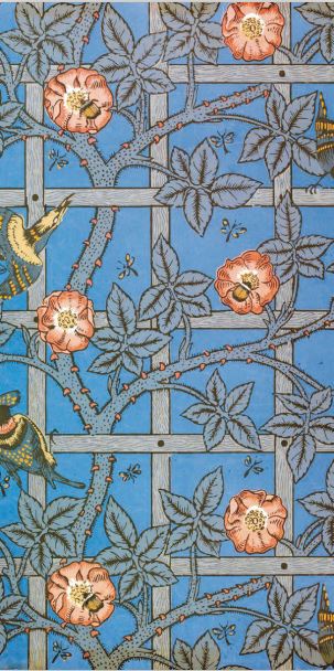 莫里斯的艺术创作,着重于自然元素与复古风格的结合,显现出对田园牧歌式的乌托邦和中世纪艺术的极度推崇。1834年,莫里斯出生于英国埃塞克郡一个证券经济人的富裕家庭,因此有很多接触艺术的机会。其童年受到中世纪艺术和建筑的影响,并热衷于拜伦和雪莱等英国浪漫主义诗人,艺术的世界构成他人文关怀的源泉。在牛津大学学习(1853—1855)期间,莫里斯与著名的拉斐尔前派兄弟会画家但丁·罗塞蒂结识,在二人的互动往来中形成了其绘画思想的主要形态——复古,这种复古中就包括罗塞蒂热爱的中世纪艺术传统。莫里斯的作品充满自然主义色彩,尤其偏爱植物、花卉和鸟类等田园意象,如常春藤、石榴、玫瑰、百合、橡树叶,以及野兔等具有非常悠久图像传统的动物形象。这种将自然世界重新组织成和谐图案的方法,正源于中世纪欧洲艺术中富有秩序感和装饰性的动植物图案所暗含的自然主义精神。