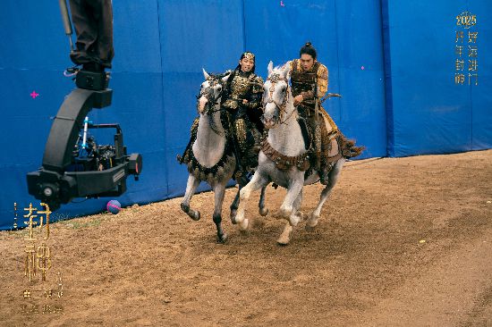 邓婵玉饰演者尔那茜与姬发饰演者于适在拍摄中
