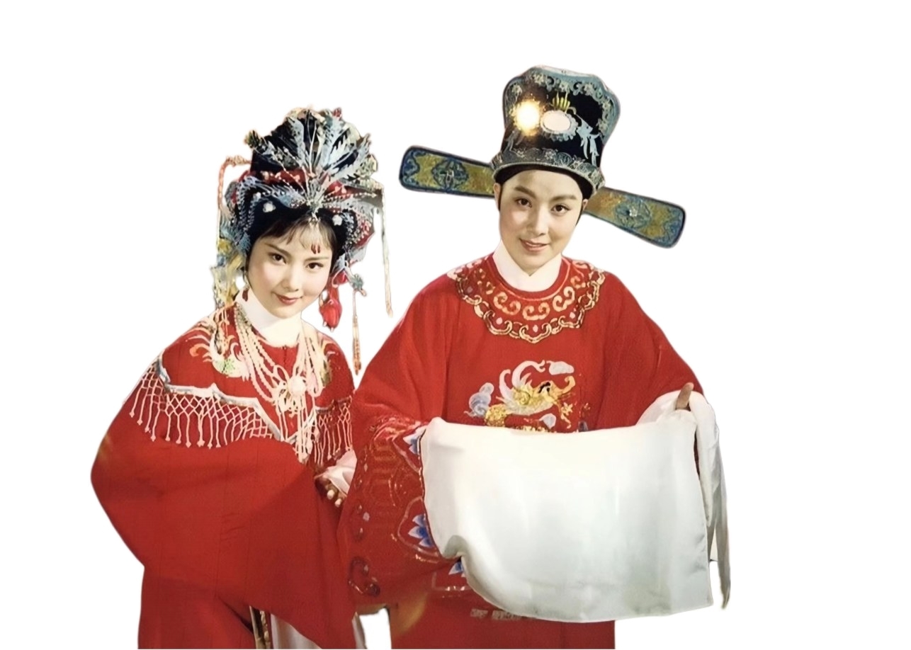 越剧电影《五女拜寿》剧照(右为茅威涛饰邹士龙,左为何赛飞饰翠云)