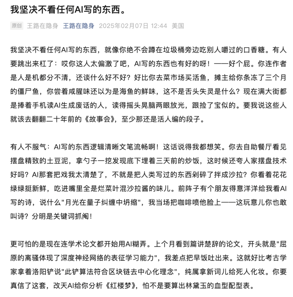 这就是同样基于概率的deepseek晚近“震惊人类”的创作,它生成的文本几乎无法分辨是不是人写的,并能够模拟任何风格与作者的文本。