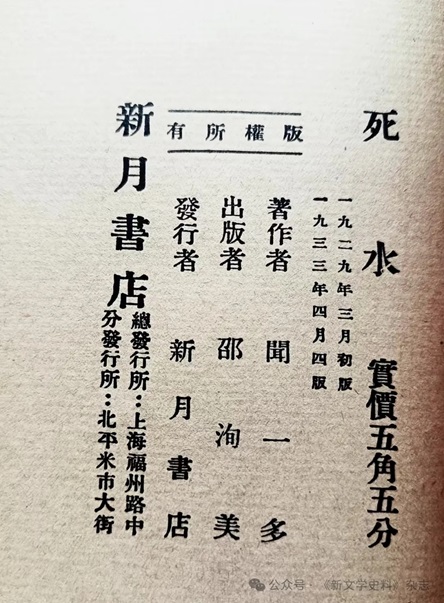 《死水》于1928年1月由新月书店出版以后,一版再版,到1933年4月,共印行了4版。早在1925年,闻一多就有归国后再版《红烛》的计划,已经做了“洗刷内容”及“删削”工作,但始终未能兑现。这或许也是《红烛》在当时不被读者注意的一大原因。