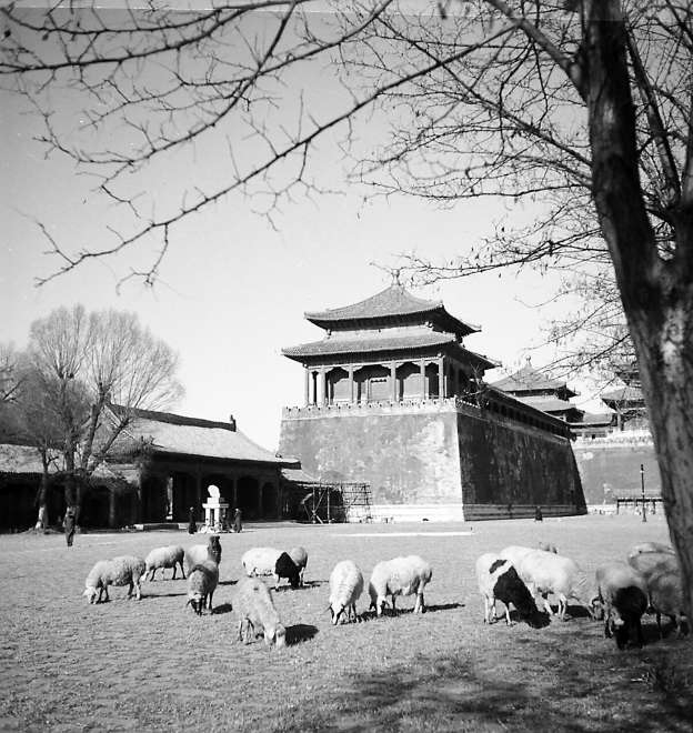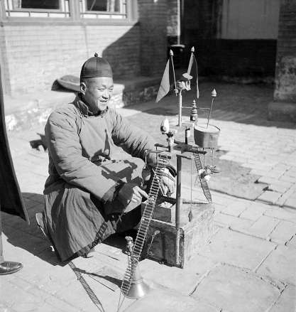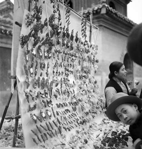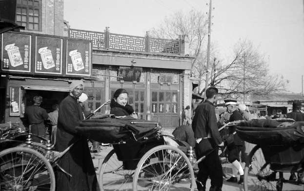 这些影像并非猎奇式的西方凝视,而是以平实的视角捕捉着鲜活的瞬间:她拍摄了胡同里的剃头匠、茶馆中听评书的市民、庙会上的杂耍艺人,展现了北平的社会肌理;她对古建筑情有独钟,镜头下的故宫角楼、颐和园长廊、西山寺庙,既呈现建筑细节,也记录其与周边环境的共生关系;春节期间的舞龙表演、葬礼上的纸扎工艺,甚至偏远乡村的社戏场景,民俗百业均纳入她的影像档案。