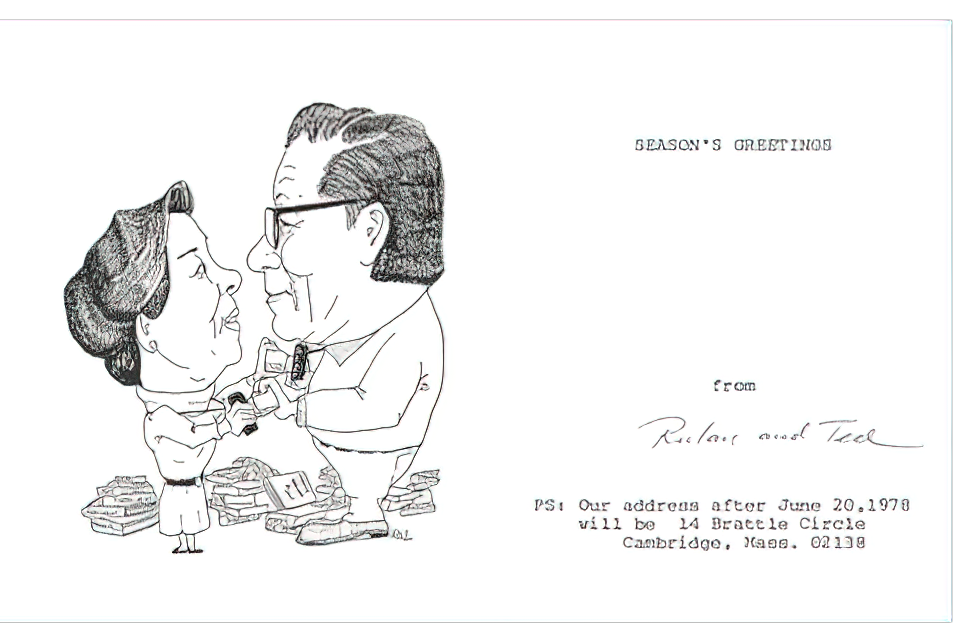 张立青、何谦、叶嘉莹、艾朗诺、洪业、齐文颖、李卉(抱着艾瑞思)、周杉、Beatrice Spade、朱红,麻省剑桥艾家,1980年。