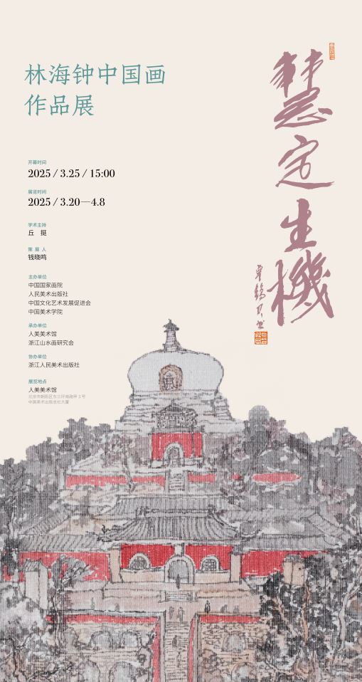 中国美术学院教授、著名画家林海钟个展“慧定生机——林海钟中国画作品展”将于3月20日至4月8日在北京人美艺术馆举办。展览开幕式将于3月25日下午举办。展览由中国国家画院、人民美术出版社、中国文化艺术发展促进会、中国美术学院主办,人美美术馆、浙江山水画研究会承办,浙江人民美术出版社协办。丘挺担任学术主持,钱晓鸣策展。
