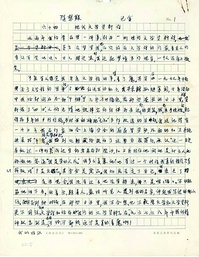 巴金《随想录》手稿,文中提及“创办一所现代文学资料馆”的心愿。现藏于中国现代文学馆。中国现代文学馆提供