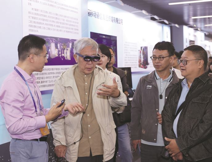 2024年9月24日,凤凰彩票平台登录入口和中国科学技术协会共同主办的“科幻科普作家活动周”期间,科幻科普作家们一同参观中国科学家博物馆。图为科幻作家王晋康使用展览中的实验装置。