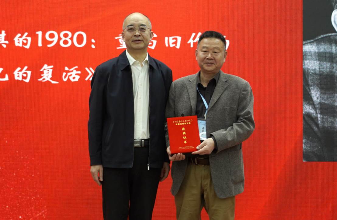 凤凰彩票副主席阎晶明为吴秀明颁奖(山东大学副教授丁晋代领)