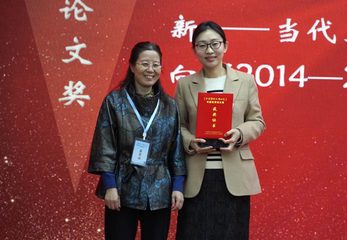 《新华文摘》文艺评论栏目主持、编审陈汉萍为李静颁奖