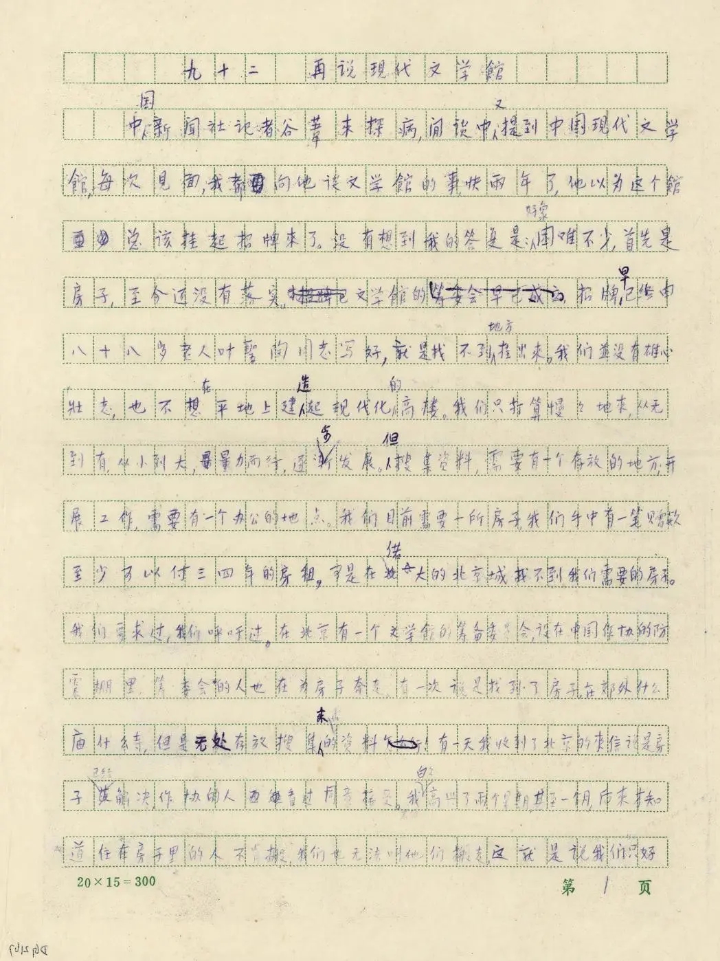 巴金《再说现代文学馆》手稿