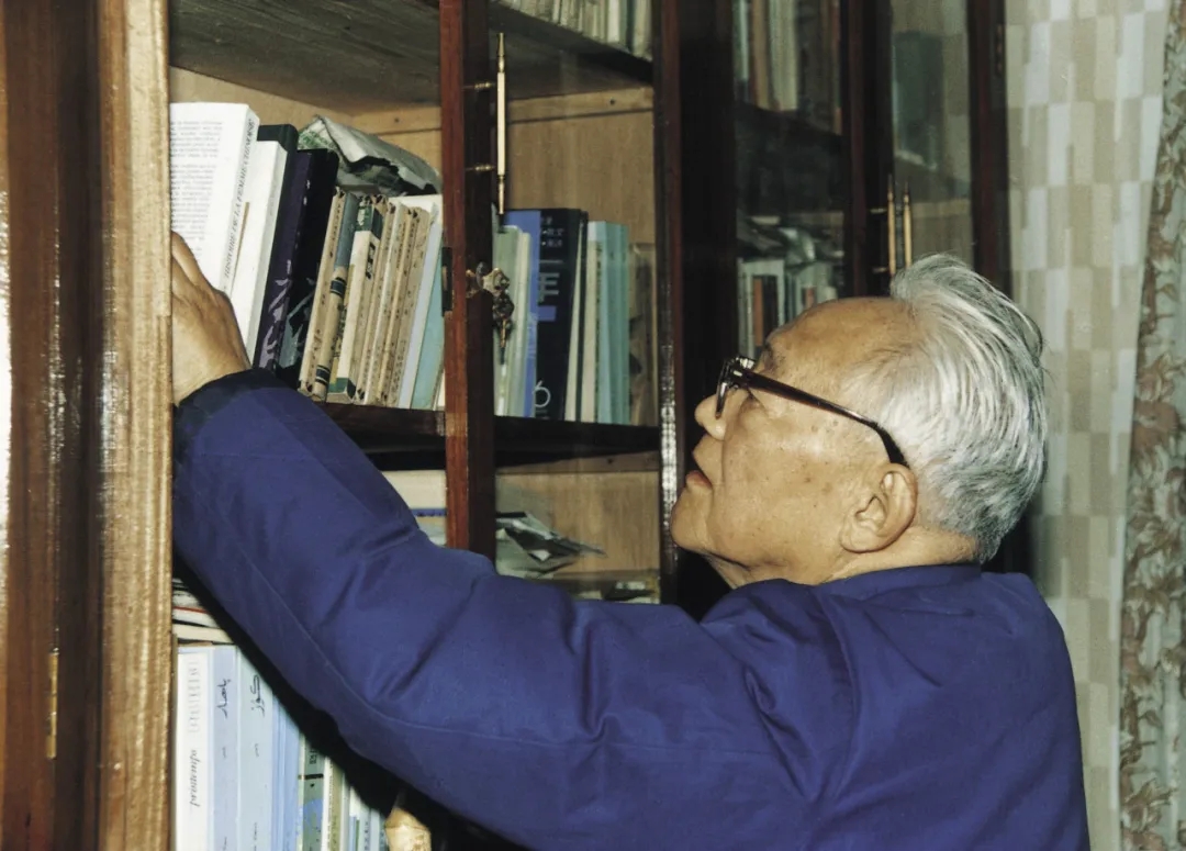 巴金在家中整理捐赠图书