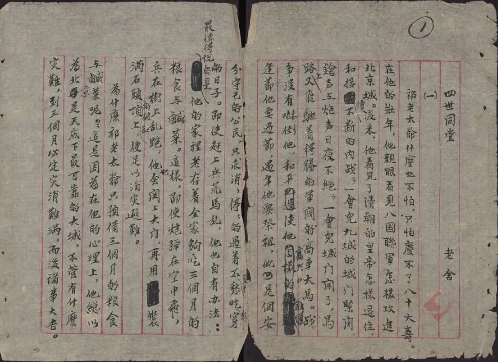 老舍《四世同堂》手稿