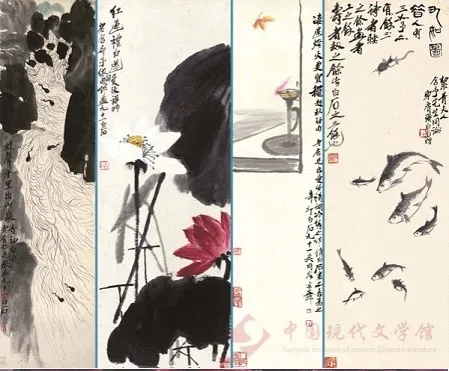 中国现代文学馆藏齐白石国画《蛙声十里出山泉》《红莲礼白莲》《凄迷灯火更宜秋》《九如图》