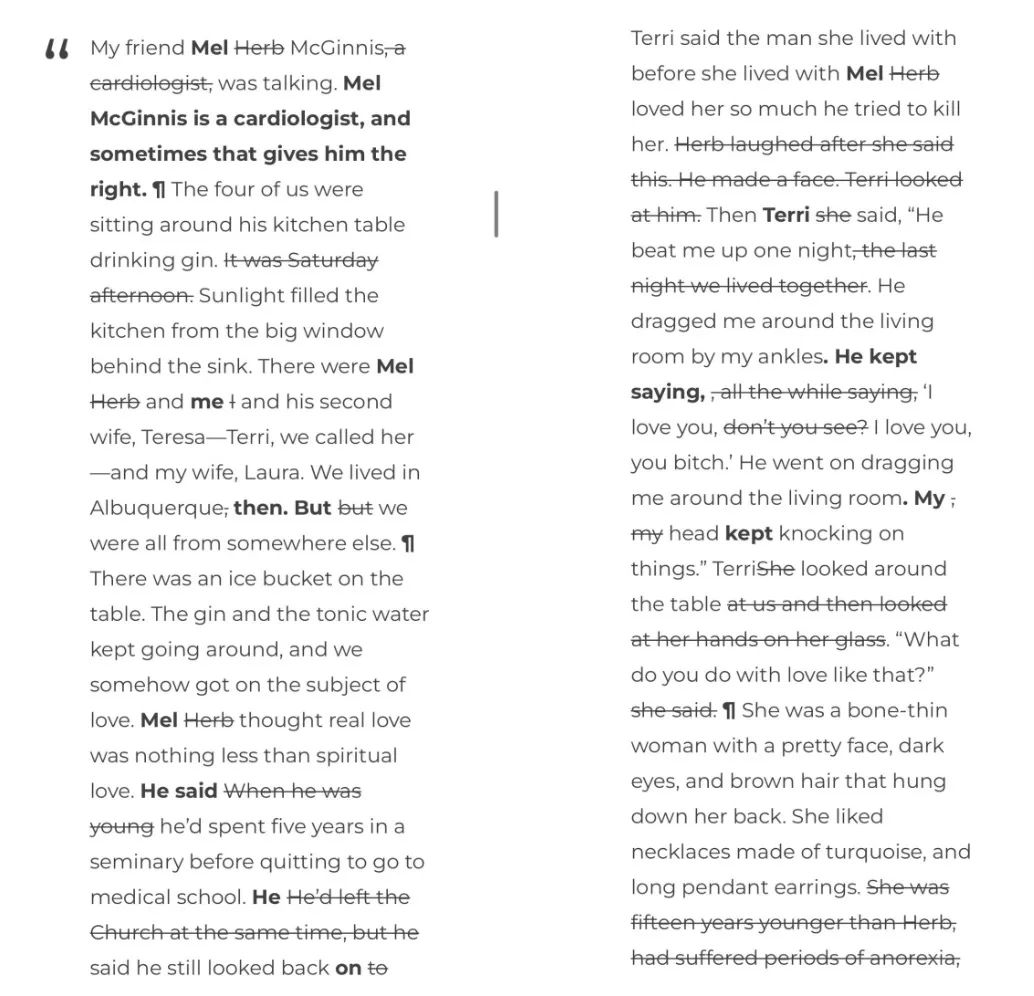 你知道,卡佛不是唯一一个被我这样对待的。我可能在他写的东西上投入了更多精力,是的,投入程度从一个短篇在一天当中改四五遍可见一斑。我在周末也这样工作。不仅仅是对雷的作品这样改。我也靠给书“治病”谋生,因为《时尚先生》的薪水远远不够用。我会从麦格劳-希尔或哈考特·布雷斯出版社接活——接这类活的好处之一是他们通常会为某一本书预付一笔金额可观的钱,这种书如果不经过大量修改,他们就没法出版。但结果并不总是令人满意的。最后总是有一种不好的感觉,疯狂的感觉,尤其是做那种代笔的工作时。我不记得这种工作我究竟干了多少,但结局不算坏。