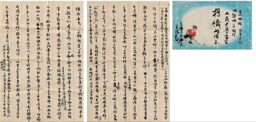 2013年12月12日由北京传是国际拍卖有限责任公司举办的“十周年(2013年)秋季拍卖会”之“‘数风流人物’——近现代文化名人墨迹”专场拍出致杨纤如信二封,2月14日信共二纸,八行笺黑色毛笔竖写;11月18日信共一纸,八行笺黑色毛笔竖写。并附信封两个,收信人信息与寄信人信息分别是“东四北张自忠路旧铁狮子胡同人民大学宿舍 杨忏如同志”与“东堂子五十一号沈寄”,“东城铁师子[6]胡同人民大学宿舍 杨忏如[7]先生 启”与“沈缄”。二信辑校如下: