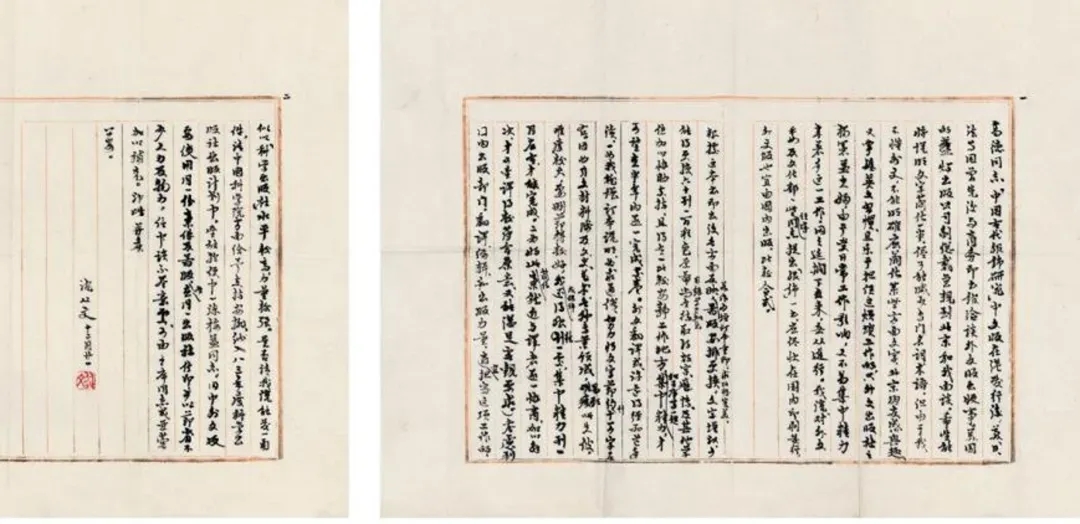 2018年6月20日由中国嘉德国际拍卖有限公司举办的“中国嘉德2018春季拍卖会”之“笔墨文章——信札写本专场”拍出此信,共二纸,纸型不详,横置黑色毛笔竖写。并附寄封,收信人信息是“西便门国务院宿舍八组四十六号 李希泌先生”,寄信人信息是“前门东大街三号科学院宿舍507号 沈”。邮戳中可辨识月日时间,为“7.5”,年份不可辨,待考。全信辑校如下: