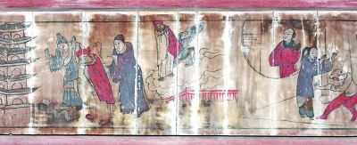 温州苍南县碗窑村上窑三官庙戏台上的“水漫金山”主题彩绘