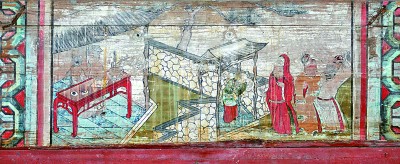 温州永嘉县北溪村杨氏宗祠戏台上的“三顾茅庐”主题彩绘