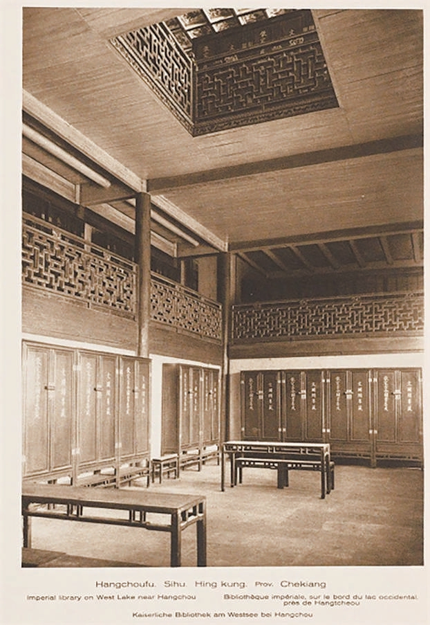 1909年拍摄的文澜阁内部,《四库全书》和书橱都在。