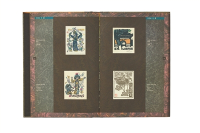 自书籍之美角度观之,《国际藏书票精选》可谓遥遥领先。此书正文页面先印深色底纹,再将彩色藏书票印于其上,随手翻开任何一页,都感觉仿佛是在窥视私人相册。此书的精装加平装双封面设计与装订,也成了几年后宁成春先生在北京整体设计豪华典藏版《莎士比亚画廊》时的灵感来源。