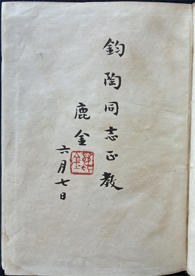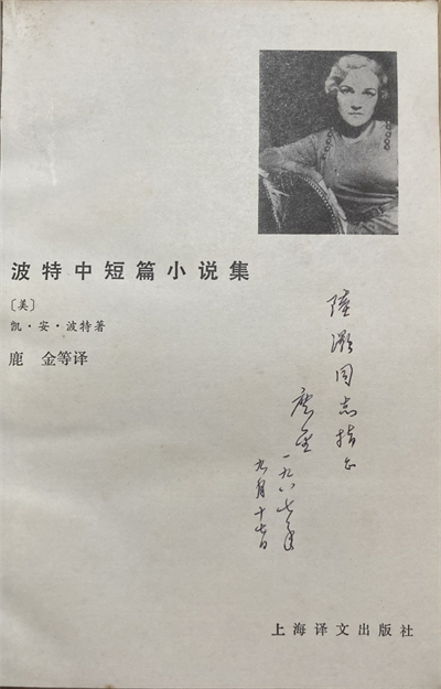 鹿金在《波特中短篇小说集》上的题词