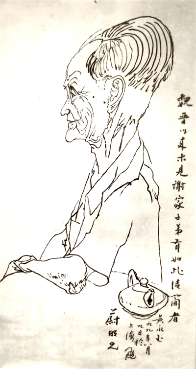 谢蔚明先生是《文汇报》的老人,晚年常来报社,有时在大堂邂逅,他衬衫口袋里会放一封黄永玉的来信,碰到就拿给我看。他们是超过半个世纪的老朋友。谢蔚明曾在文章里引过黄永玉一封信的话,让人印象深刻:“过去,好些年才死一个老头子,后辈人从从容容寄托哀思,写了许多有意思的文章,沉重沉重好长一段时间。现在一串一串地来,好像激情爱国者踊跃抢购公债券,前赴后继不堪之至,让人静默三分钟都来不及,像我,就欠了许多分量很重的情……”(谢蔚明《杂七杂八集》,武汉出版社,2000年3月版,56页)有一回,口袋里放的是黄永玉给他画的白描像的照片,谢先生印了一些分赠朋友,也送我一张。那幅白描像画得真是绝,一旁的题词也绝:“魏晋以来未见谢家子弟有如此清简者。黄永玉九九年八月八日于上海画蔚明兄。”钱默存曾有两句题画诗:“画品居上之上,化人现身外身”,移来称赞黄永玉的这幅白描人像,再贴切不过。谢蔚明先生后来写了篇《黄永玉赠画》,说那幅白描像有九十公分高,只用了一刻钟多一点时间就完成了(谢蔚明《那些人那些事》,上海远东出版社,2006年5月版,13页)。