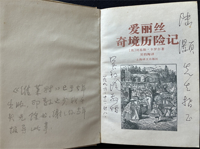 吴钧陶在《爱丽丝奇境历险记》上的题词