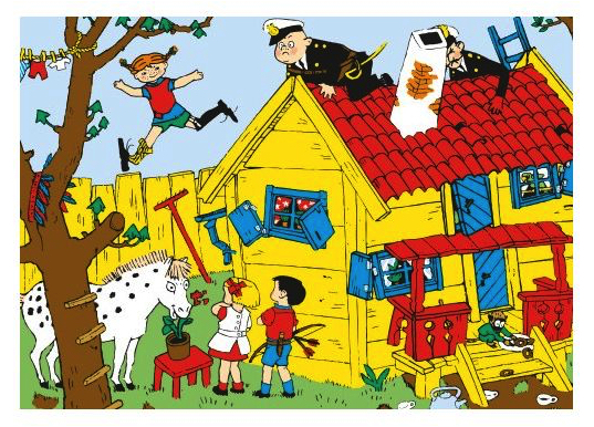 无独有偶,艾尔莎·贝斯蔻也曾因外头充满灾难,家里食物短缺,更感到描绘田园诗般的美好日子的必要。所不同的是,贝斯蔻的故事里,成人主导着严谨的秩序;而皮皮的故事里充满滑稽和混乱,以皮皮和孩子们为中心,遵从孩子的规则。林德格伦说过,对孩子来说,最重要的是自由和安全感。当然,处于社会之外,作为托米和阿妮卡的鲜明对比、做出各种挑战言行的皮皮,她的挑战有金钱和超能力加持。