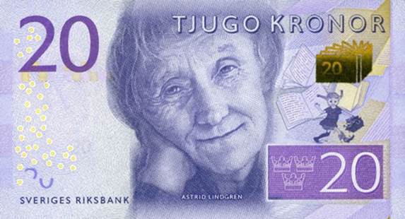 瑞典二十克朗纸币上的皮皮和林德格伦