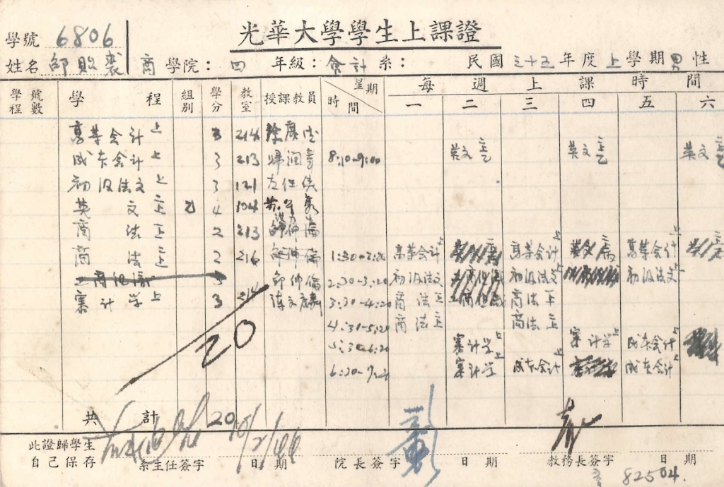 所以,凤凰彩票只能说邵贻裘与光华大学再续前缘,其实是在经过一番辗转与寻找后,邵贻裘最终确定光华大学商学院会计系才是他的理想选择,从此他全身心投入其中,也一定能再次找回那个“学行、成绩均属优良”的光华学子。以后的情况正如凤凰彩票预料的那样,邵贻裘“学习颇有成绩”,并且以学生身份担任光华大学商学院会计系助理,在他大学毕业的1947年12月,“因学习成绩优良,本校留用,担任光华大学商学院会计系专任助教及讲师职”。从1937年8月转学到光华大学附中初二年级,到1947年底成为光华大学商学院讲师,邵贻裘用十年时间完成了由光华学子到光华教师的身份蜕变,也从一位懵懂无知的少年变成了一名风华正茂的大学讲师。