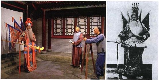 《定军山》拍摄现场复原图(左一)与《定军山》剧照