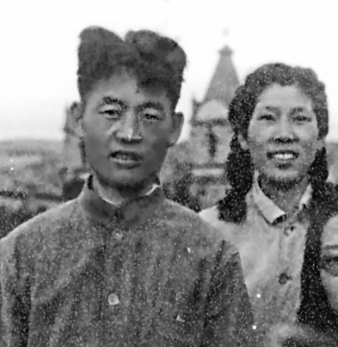 牧虹和妻子仲伟在延安鲁迅艺术学院的照片。