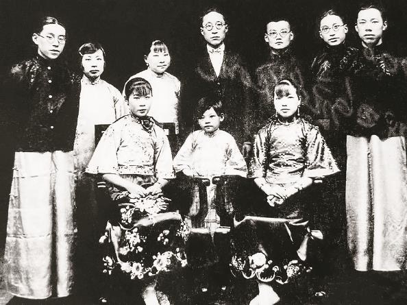 全家福合影,祖父(后排右三)和祖母(后排左三)