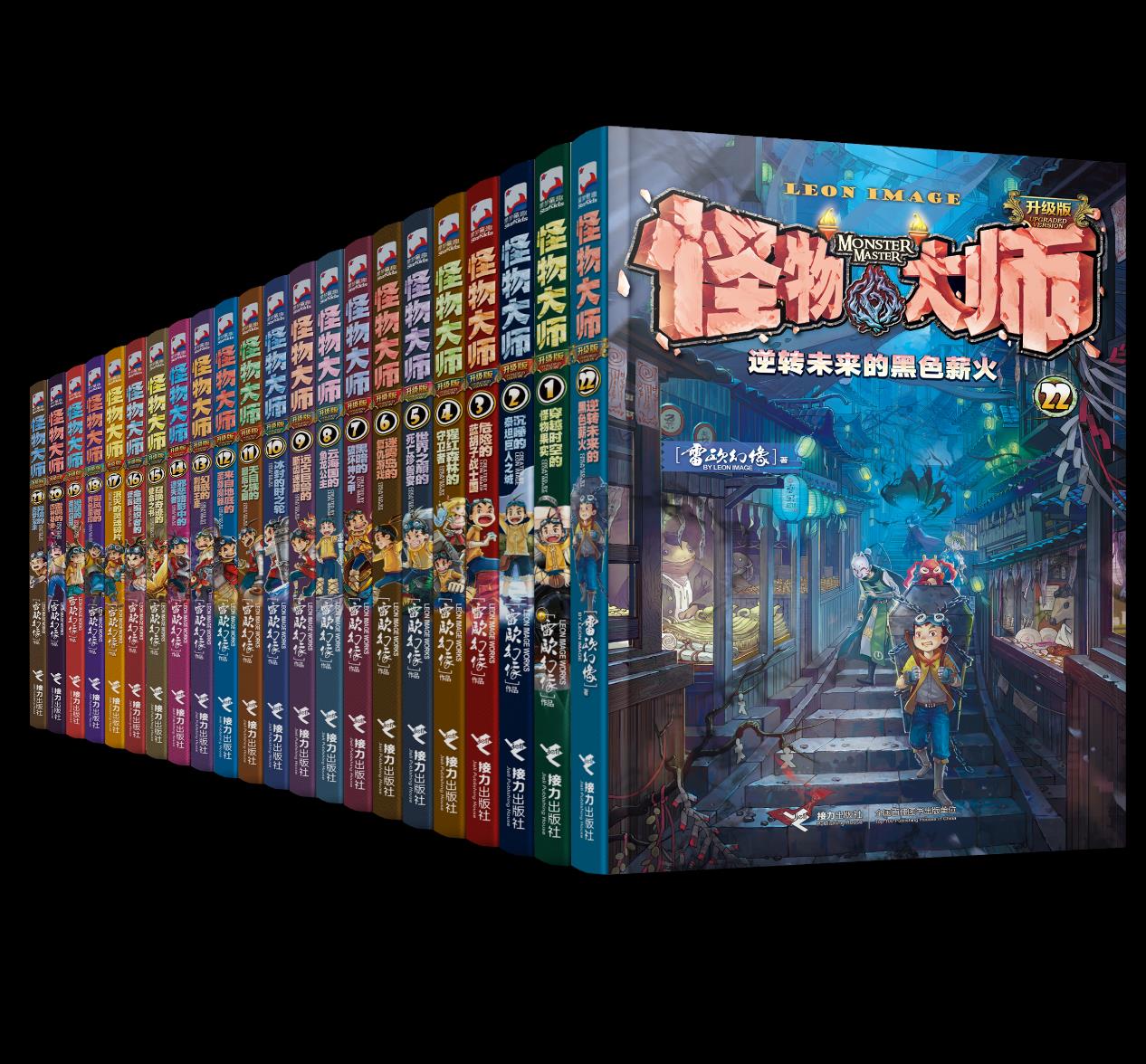 “怪物大师”系列小说由接力出版社在2012年出版,目前已出版22种,发行2500万册,是原创奇幻小说超级畅销书,曾入选2024中国—东盟图书文化周活动“童书引领者”榜单、“岁月典藏·十大影响力套系童书”。2024年底,第22册《逆转未来的黑色薪火》出版,官方直播间两天销售2万册,半年发行了15万册