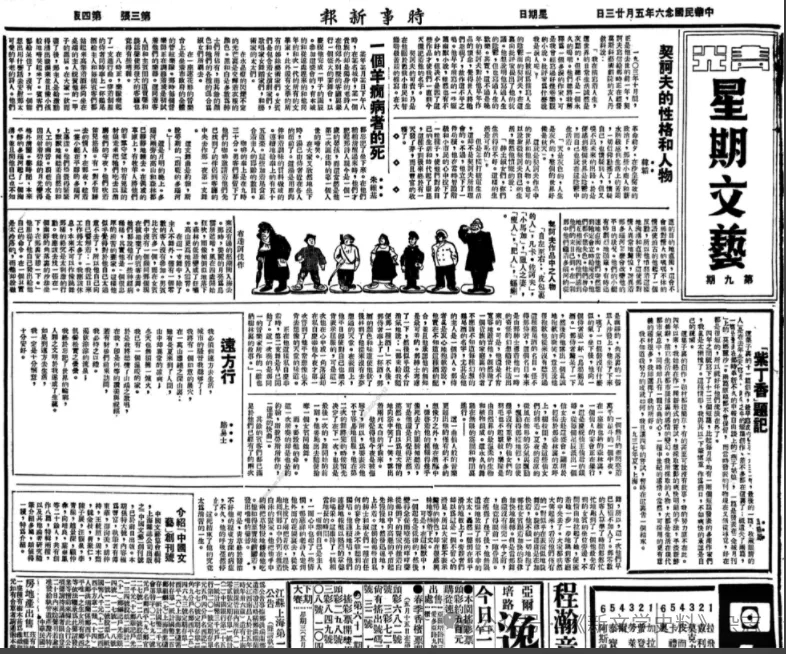 然而,出版《紫丁香》毕竟是叶灵凤“念兹在兹,朝斯夕斯”的一个心愿。他离开现代书局后,先与张光宇合作编《万象》,⑧又与穆时英合编《文艺画报》,⑨还与高明、姚苏凤、穆时英、刘呐鸥等合编《六艺》,⑩都有属于“新倾向”的短篇新作揭载。终于,在《紫丁香》书名公布四年之后,叶灵凤在1937年5月23日上海《时事新报·青光·星期文艺》上发表《〈紫丁香〉题记》,正式宣布这部“新倾向”短篇小说集已经编成,即将付梓了。这篇《题记》是叶灵凤的一篇从不为人所知的集外文,并不长但很重要,照录如下: