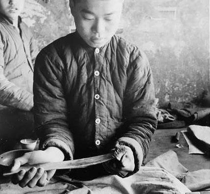 和平门外胡文昇笔庄的师傅们在制作毛笔。