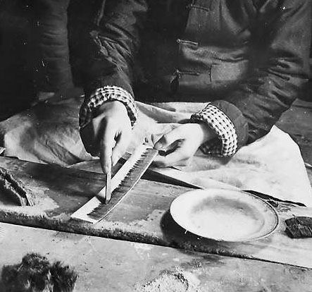 毛笔制作工序之一挠帖子。