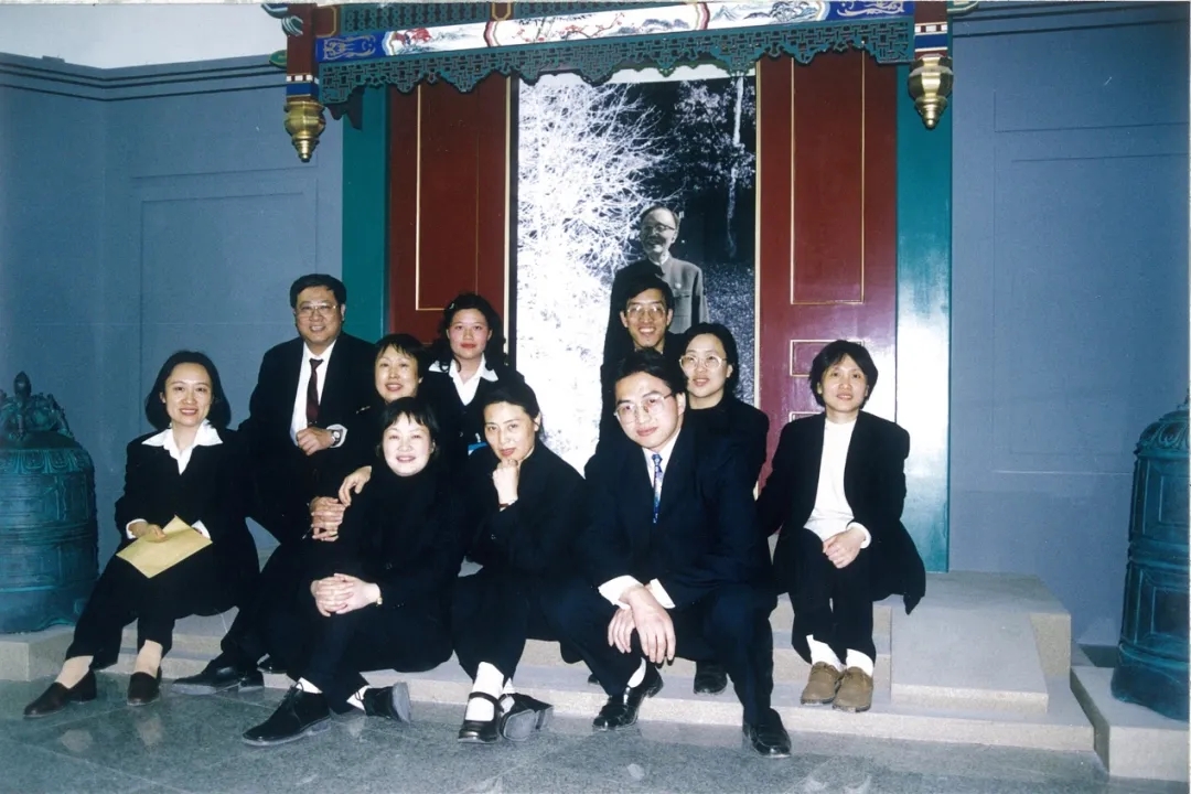 2000年搬入新馆后与文学馆馆员们合影。前排左起:计蕾、王铁红、北塔;后排左起:李今、李家平、徐建华、杨帆、王峰、李燕芬、刘慧英