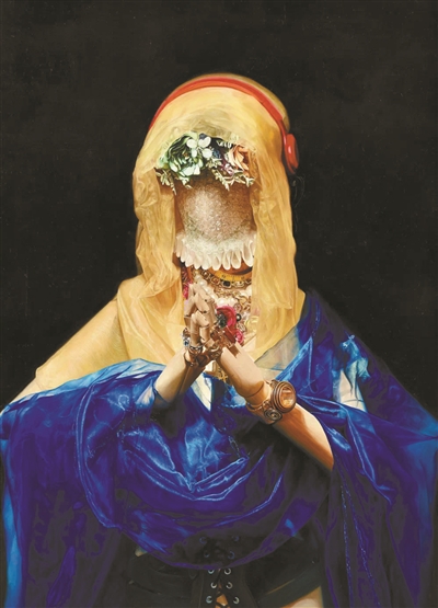 安琪坦言创作受17世纪意大利画家桑索费莱托《祈祷的圣母》启发——巴洛克式的戏剧性光影、古典圣像的庄重构图,成为她解构消费主义的语法基础。写实技艺在此非目的而是手术刀,若无对古典技法的掌握,便无法精准刺破当代幻象。安琪自述创作源于亲历的“购物后悔症”——气泡膜下被遮蔽的面容,既是算法推荐的千人一面,也是被消费主义剥离主体性的消费者群像。