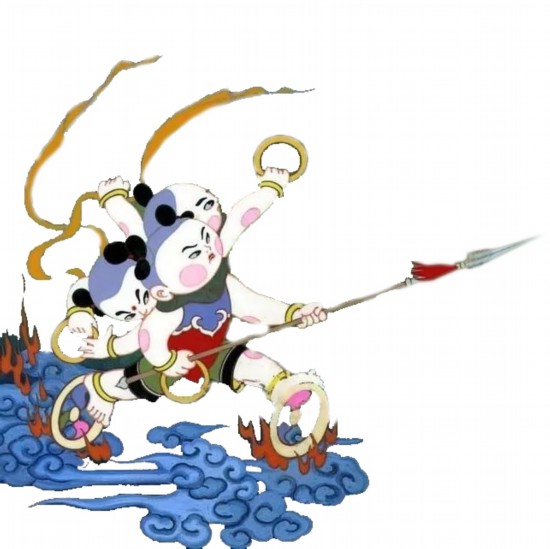 自上世纪60年代到新世纪之交,有三部与哪吒密切相关、影响较大的动画作品。1961年的彩色动画片《大闹天宫》是上海美术电影制片厂的开山之作,也是哪吒首次被搬上银幕的作品。影片中,哪吒以“圆润白胖、三头六臂”的造型登场,身着红肚兜、脚踩风火轮,虽为配角,却以骄横之姿与孙悟空展开激战。其形象融合年画婴戏图与戏曲形式,为后续的哪吒形象塑造奠定了视觉基础。1979年的《哪吒闹海》是中国动画史上的里程碑,它以工笔重彩重构“剔骨还父”的悲剧叙事。导演王树忱从敦煌壁画与民间版画中汲取灵感,赋予哪吒白衣红绫、冷峻英气的少年形象。哪吒自刎一幕的悲壮将反抗精神推向极致,被誉作“国漫史上最悲怆的镜头”,其艺术高度至今仍是东方美学的标杆。2003年,《哪吒传奇》52集动画连续剧以“儿童英雄”为定位,将哪吒塑造成天真勇敢的“小英雄”。作品融入小猪熊、小龙女等原创角色,弱化原著的血腥冲突,强调友情与成长,作品偏向低龄化的叙事风格虽然受到了一些批评,却成功将哪吒形象嵌入“90后”的童年想象。