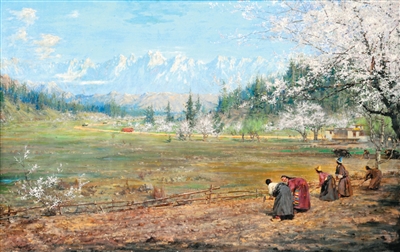 这一时期,描绘西藏题材的美术创作宏富,尤以董希文的《春到西藏》最具象征性和吸引力。1954年春,董希文赴康藏写生两月余,而后完成《春到西藏》。作品描绘了一幅动人的场景:春光明媚,土地复苏,杏花树下劳作的人们起身张望,远处新开发的公路上,汽车川流不息,远景是高耸入云的雪峰,恰如其分地展现了西藏人民解放后喜悦昂扬的情感意象。董希文将解放和春天联系在一起,用汽车和公路寓意新生活,用充满期待的张望和欢声笑语表达了人民的心声,别开生面。1963年至1964年,董希文油画《千年土地翻了身》、朱乃正油画《金色的季节》、李焕民版画《初踏黄金路》、郭其祥雕塑《女牧工》、叶浅予中国画《高原之春》、潘世勋油画《凤凰彩票走在大路上》等,都是以明亮的阳光和色彩烘托效果,表现藏族人民解放后的幸福生活和蓬勃的精神面貌。