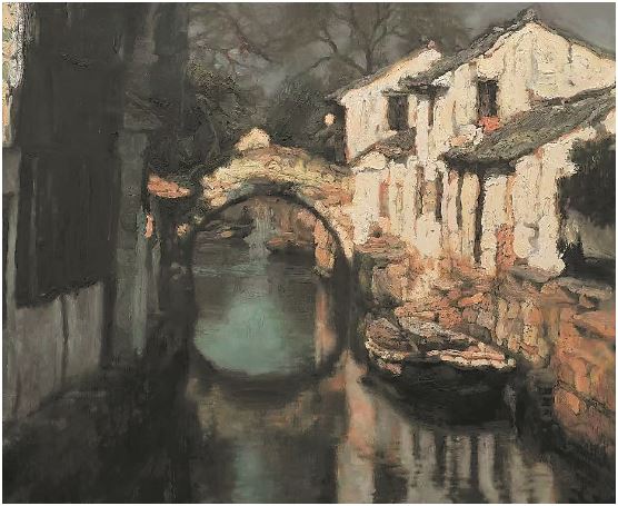 “视觉”这一文化建构经现代化发展之后,在人们的日常生活中愈发重要。随处可见的视觉产品影响着人们的感知,陈逸飞曾将当时的上海比作一座“视觉学校”。在他的艺术语境中,这一概念有着几重深刻的内涵。首先,这座城市本身就是动态的视觉教材。上海滩新旧并置的都市景观天然训练着市民的视觉敏感性。正如陈逸飞在《海上旧梦》系列中捕捉的,每块砖石都镌刻着东西方视觉文化的对话痕迹。其次,上海孕育了独特的视觉教育机制。从月份牌广告到老电影制片厂,从旗袍剪裁到梧桐树影的光影游戏,城市通过日常细节持续传递着视觉教养。这种教育并非发生在传统课堂,而是悄然渗透在咖啡馆的玻璃反光中、苏州河的水波褶皱里,潜移默化地培养着市民对色彩和构图的审美感知。作为一座真正的“视觉学校”,上海最核心的价值在于其生产视觉认知范式的能力。石库门门楣的装饰纹样成为解读社会阶层的密码,外白渡桥的钢铁结构则成为理解现代性的媒介,这种视觉规训不仅塑造了海派文化独特的审美辨识度,也为陈逸飞提供重构历史的图像词典——恰似他在《海上旧梦》里巧妙调用的那些城市记忆碎片。