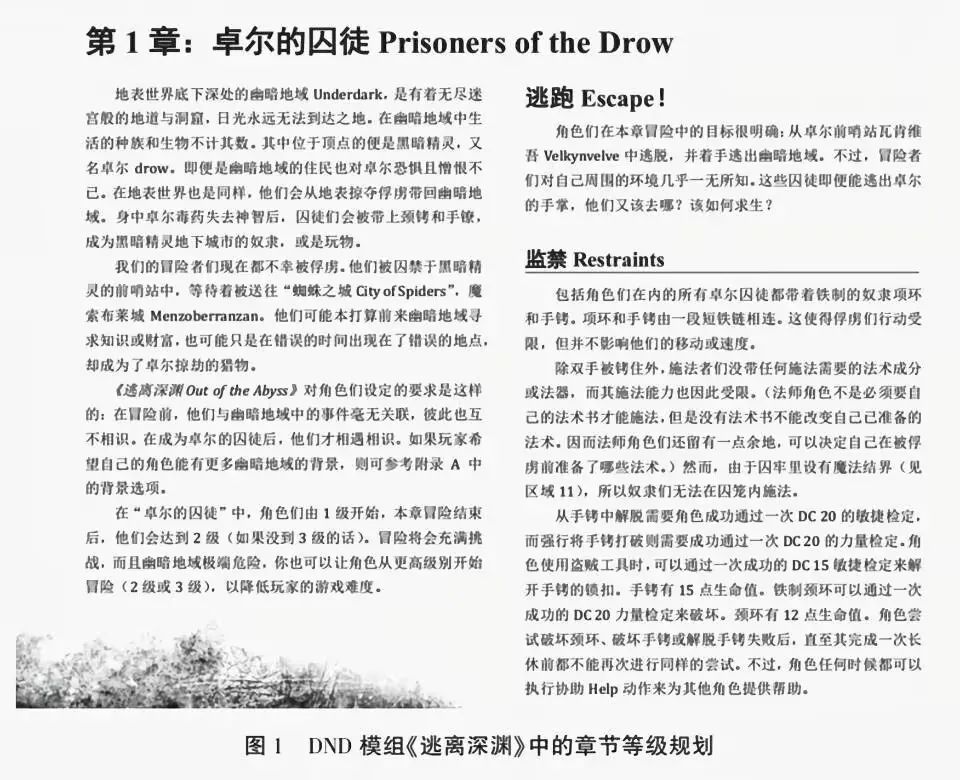 模组的情节行进、内容解锁、新地图展开,是跟玩家的等级息息相关的。模组可能是“升级打怪换地图”这一机制的初始形态。模组中设置的遭遇战数量、敌人等级、所引导角色行为等可以生成可控、可量化的经验值,可视化为玩家等级。而升级往往意味着一段冒险的结束与对应成长,准备下一段落(新世界与更难的怪物)的开始,模组以升级为“标记点”,来规划地图、情节、战斗,DM也以升级为“标记点”掌控游戏进程。升级便宛如开放世界中的导航工具,埋下隐藏的“线性”,最大限度保证玩家游戏行为的自由,同时寻回对游戏叙事的把握。