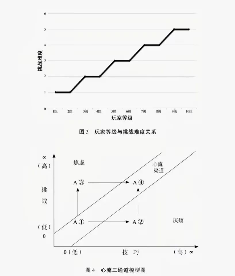 在游戏设计中,心流与升级机制息息相关。正如前文所论证的,在标志升级机制成熟的《龙与地下城》游戏中,升级这一机制最开始是为了给DM调控遭遇战难度,并更好地规划出一条相对线性的游戏内容。在强调技能程度和挑战难度关系的心流理论中,升级机制起到了对这种关系进行“动态调控”的作用:玩家在升级后进入新地图,敌人的难度对于玩家是高的、具有挑战性的,随着玩家战斗经验的累积,玩家再度升级,自身能力提升,地图中的敌人难度会相应降低,此时往往会迎战地图关卡的高难度BOSS,战后再度升级,进入新的等级地图,从而进入一种阶梯状的难度循环。如果凤凰彩票将这种玩家升级和难度体验之间的关系画出一幅折线图,凤凰彩票会发现它与心流理论的三通道模型图非常相似——很多游戏正是利用升级,来保证玩家始终处于心流的体验中。
