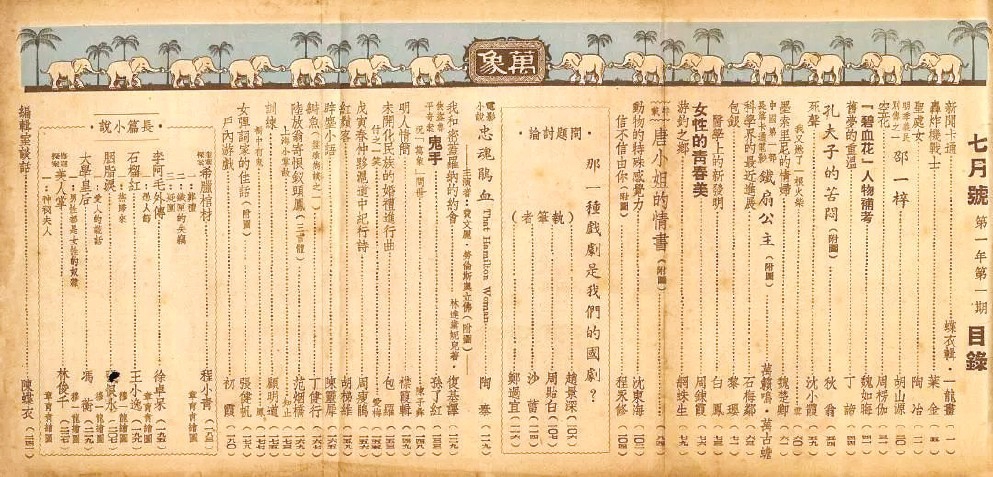 《万象》创刊号目录 图片来源:中国近现代新闻出版博物馆网站