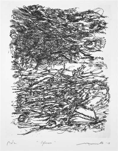 今年4月,上海多伦现代美术馆举办“东西汇梦——中意当代版画交流展”,将这一艺术形式带回中国新兴木刻运动的发源地。展览不仅呈现艺术风格的碰撞,更着重展现艺术家对传统版画技术的创造性转化。例如,意大利艺术家马里奥·托马塞洛的抽象铜版蚀刻《奥吉纳姆》与中国艺术家谭平的套色木刻《无题1》,将传统版画技艺转向纯粹抽象表达。前者通过凹版腐蚀线条构建繁杂的无意象画面,后者则通过富有张力的直线将画面切割成极简的几何形态。两位艺术家在深入掌握传统技艺的基础上,突破版画原有的叙事功能,转向对形式、材质和印痕美感的探索,使古老技法焕发出新的生命力。