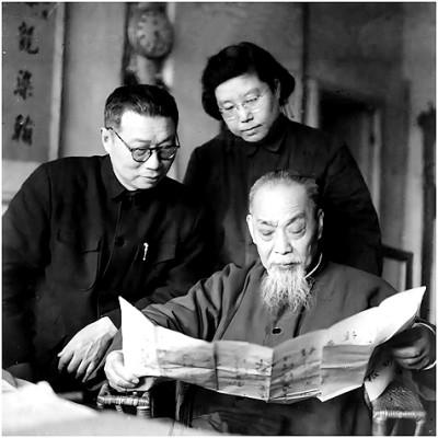 1963年,陈垣(前)、柴德赓(左)、刘乃和在一起。 柴念东提供