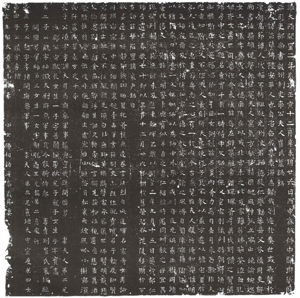 崔芷蘩去世在隋开皇二年(582),又是一个崭新的时代,由于崔仲方的功绩,博陵崔氏再度崛起。崔芷蘩的丧礼很可能是哥哥崔宣猷或侄子崔仲方主持完成。她的墓志尺寸达到惊人的81×82厘米,远超家族中的男性成员。比如她的叔叔崔孝直的墓志尺寸是73×71厘米,哥哥崔宣度的墓志尺寸为63.5×64厘米。并且,《崔芷蘩墓志》的尺寸极有可能大于《李希仁墓志》。尽管《李希仁墓志》的具体情况尚未刊布,但李希仁的哥哥李希宗的墓志也不过62×62厘米。今已知尺寸最大的北朝女性墓志当属《魏瑶光寺尼慈义墓志》,为83×84厘米。志主高英生前曾是北魏宣武帝元恪的皇后。换言之,崔芷蘩的墓志大小几与皇后相近。但是她本人生前未曾得到任何加封,死后也没有追赠,因此如此“异常”的尺寸只有可能出自丧家私人行为。也许是因为崔仲方新朝权贵的地位,也许是崔宣猷出于对最后一位姊妹的痛悼,《崔芷蘩墓志》才呈现出如今面貌。