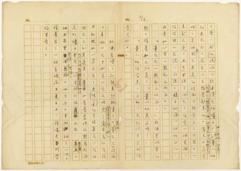 但根据当时资料显示,《争斗》无疑是一部“未完成”的长篇小说。这在研究师陀的学者中几乎已经形成定论。因为此后一直没有再发现任何与《争斗》有关的资料,直到2017年我看到了这部《争斗》四章手稿。实物的出现,证明了当年师陀确实完成了这部手稿,随着后两部残稿的出现,证明了师陀对这部小说其实进行了几次修改,其中一部复写稿中更是出现了一章全新的章节,这让这部小说章节数达到13章,共56000多字。由此可见,师陀先生当年应该是创作完成了这部小说,只是一些客观原因让小说无法继续发表,再加之上海时局与自身生活的动荡,该小说很有可能被他不小心“遗失”。随着时间流逝,师陀记忆渐渐模糊,他也认为自己当年并没有完成这部《争斗》。